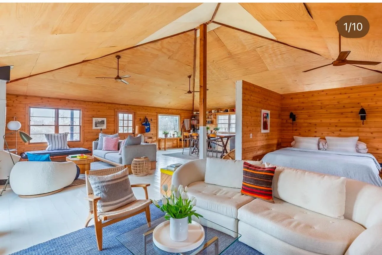 A bungalow-style home on Long Island’s South Shore. Just steps away from the bay and a few minutes from Bellport Village, this open, light-filled space features a living room with a fireplace, a kitchen and dining area, and an en-suite bedroom with a soaking tub. The outdoor pool and shower are surrounded by acres of natural preserve, making this a true retreat for design and nature lovers.